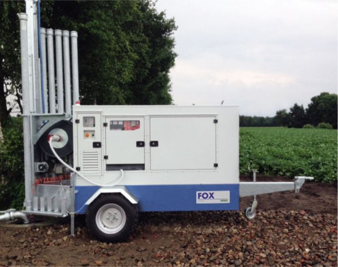 Fox to modułowy zestaw składający się z generatora wyposażonego w panel z inwerterem, który można łączyć, w zależności od potrzeb, z pompami powierzchniowymi i/lub pompami zanurzeniowymi i/lub pompami elektrycznymi. Gama produktów obejmuje moc od 30 do 150Kva z silnikami Iveco FPT lub John Deere lub innymi markami na życzenie.